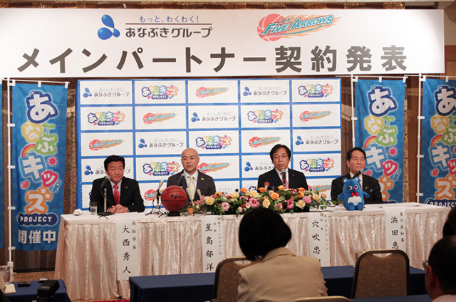あなぶきグループ(全27社、代表:穴吹 忠嗣 あなぶき興産 代表取締役社長)は、プロバスケットボールチーム、bjリーグ高松ファイブアローズ(代表:星島 郁洋 代表取締役GM)と2015-2016シーズンのメインパートナー契約を締結いたします。